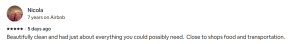 Beautifully clean and had just about everything you could possibly need. Close to shops food and transportation.